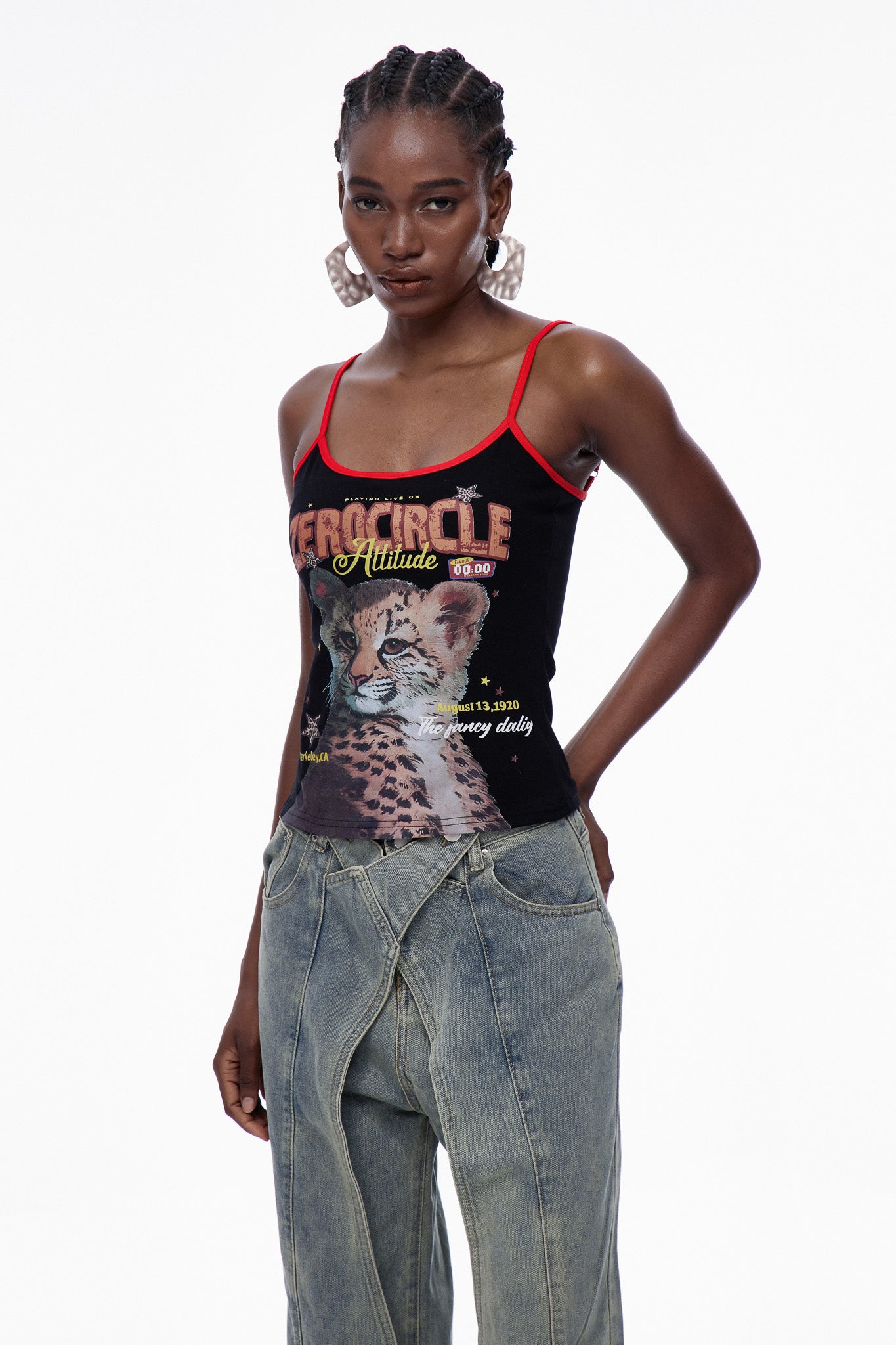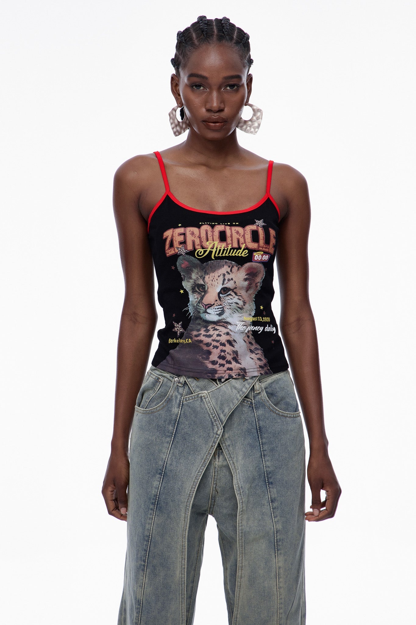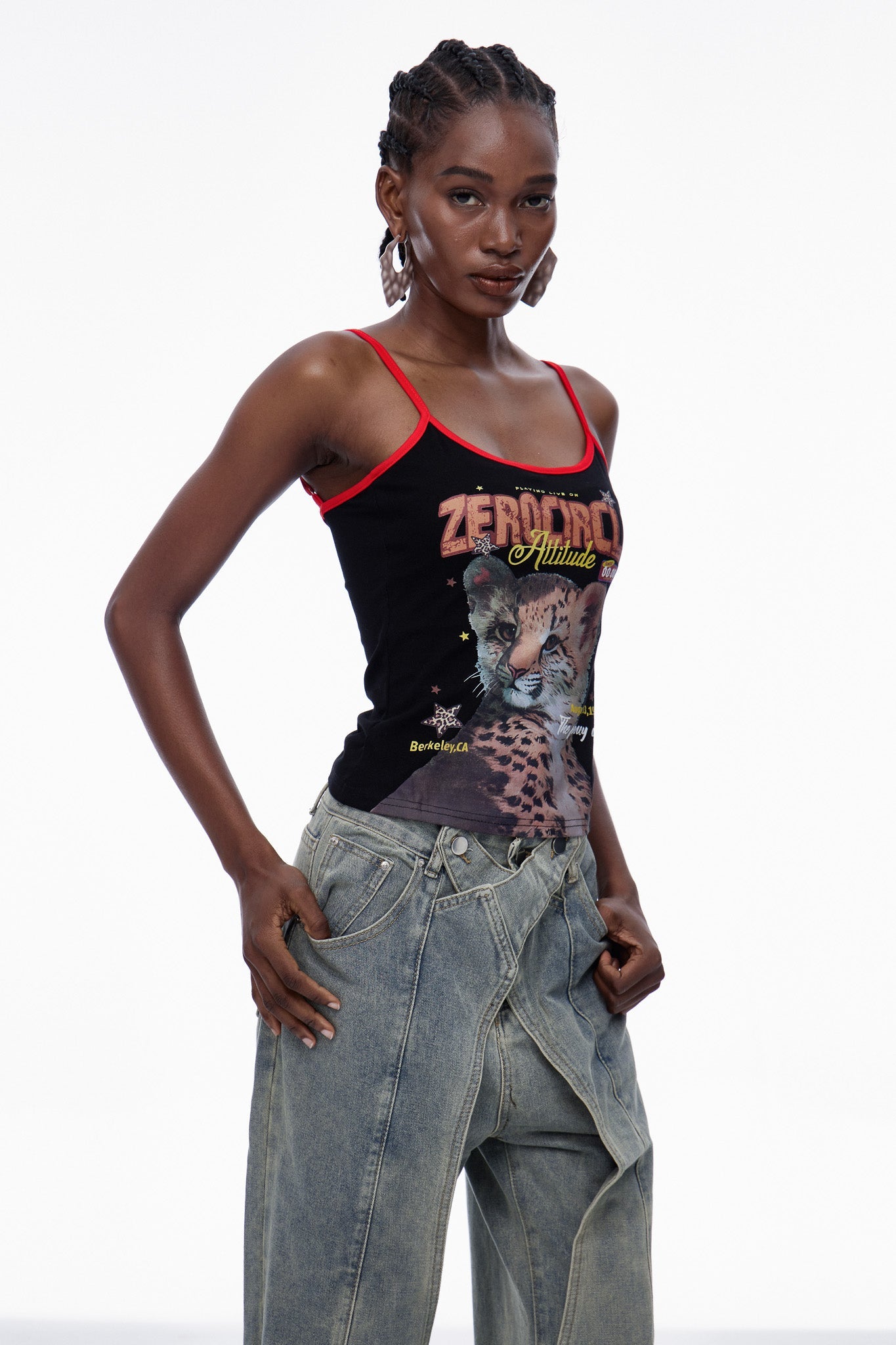 Ellalabel Carbry Print Black Spaghetti Top - Chic & Versatile – Ellalabel.com