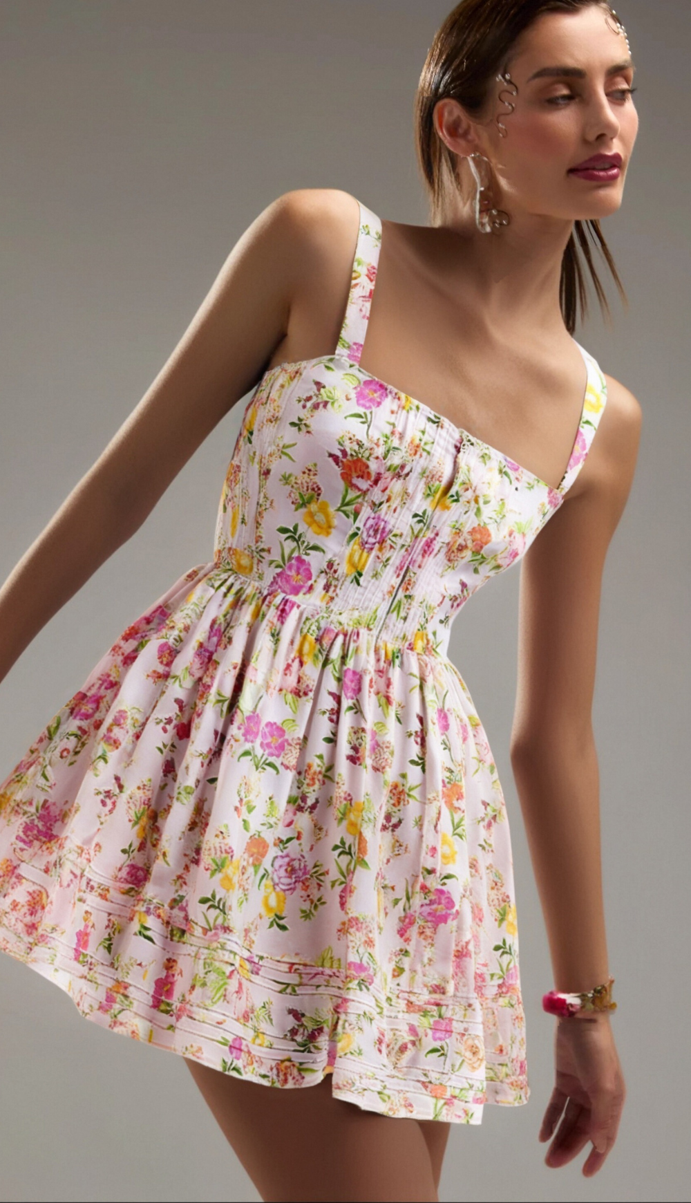 FLORAL PRINTED COTTON MINI DRESS - S / Pink is backordered and will ship as soon as it is back in stock.