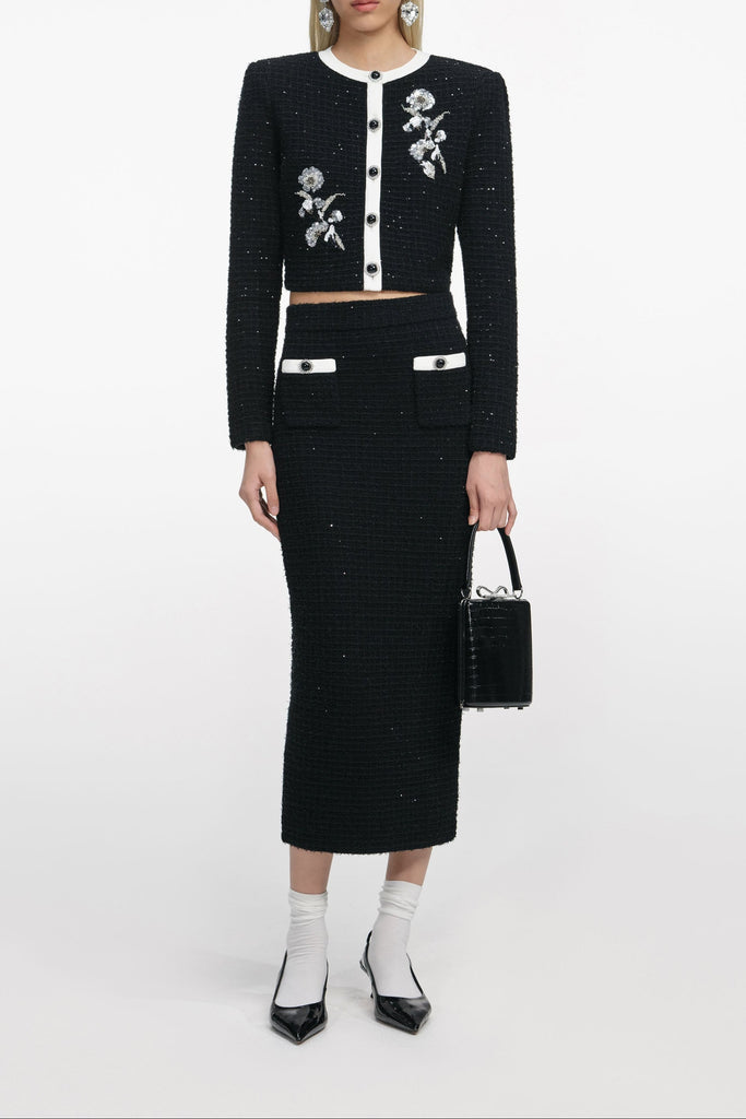 beulah Pink Boucle Metallic Tiered Midi Dress