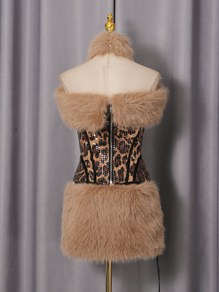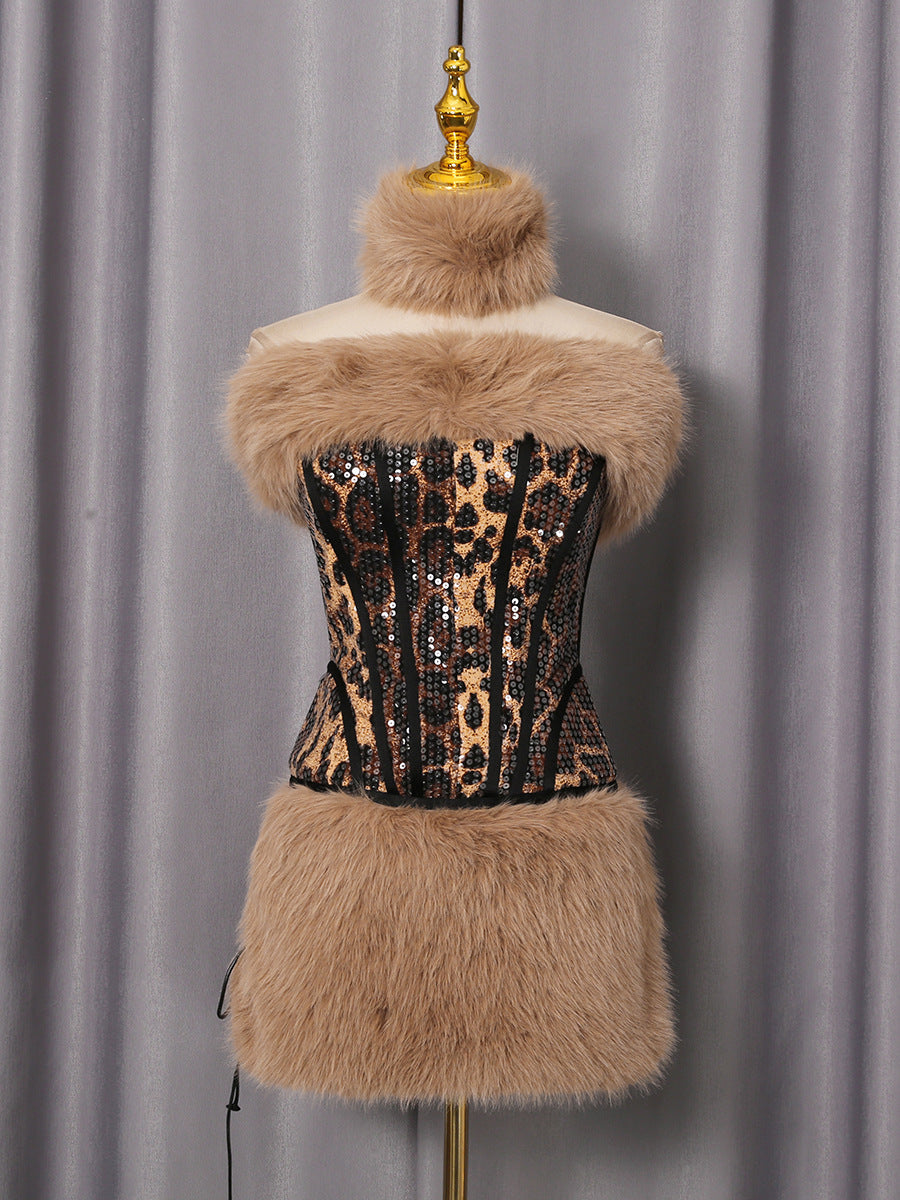 kristin Leopard Fur Sequin Skirt Set – Ellalabel.com