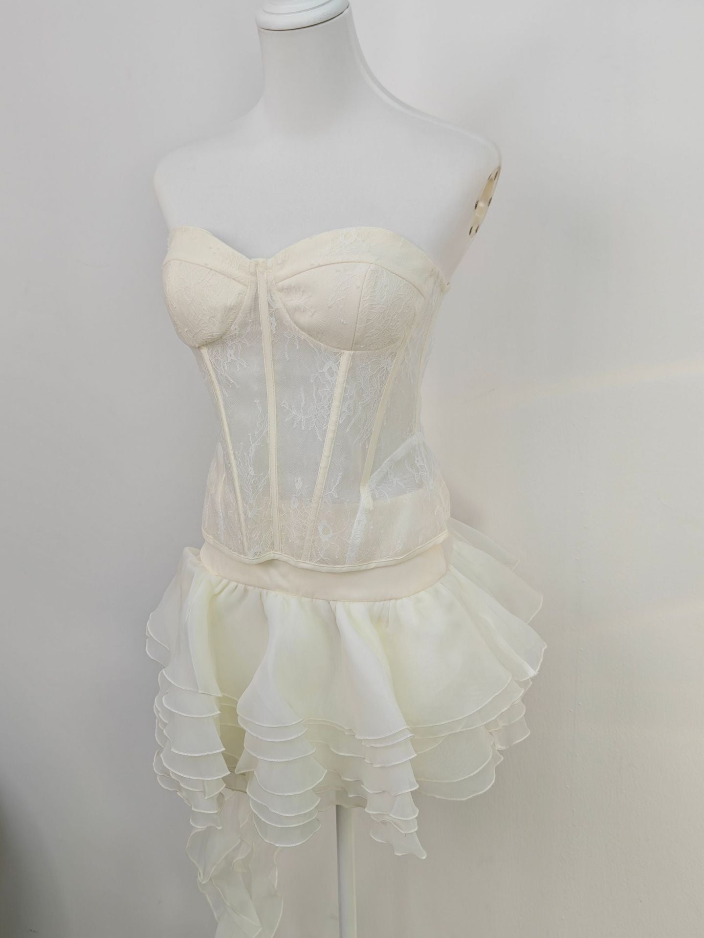 lauren Irregular Petal Lace Bodycon Mini Skirt Set In Beige – Ellalabel.com