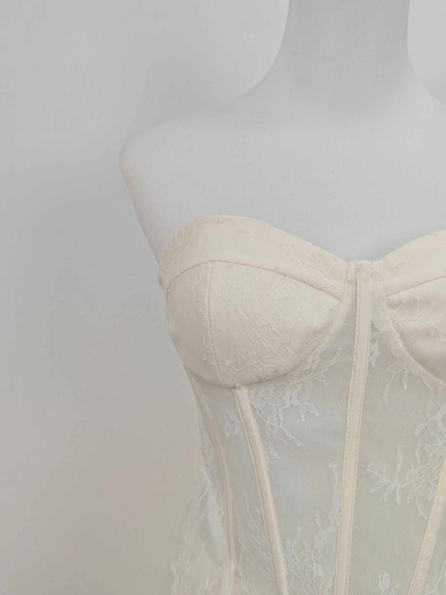 lauren Irregular Petal Lace Bodycon Mini Skirt Set In Beige