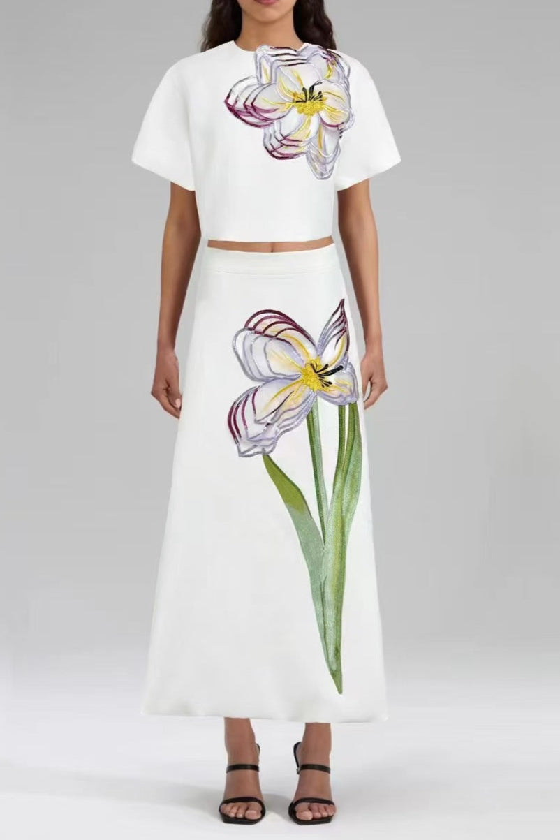 Elevate your wardrobe with this White Floral Embroidered Midi Dress Matching Set, expertly crafted for a refined and cohesive look. The delicate floral embroidery adds intricate detail, while the midi length offers a balanced silhouette suitable for various occasions. Designed as a matching set, it ensures effortless styling and a polished appearance. Perfect for those seeking elegance combined with subtle sophistication.
