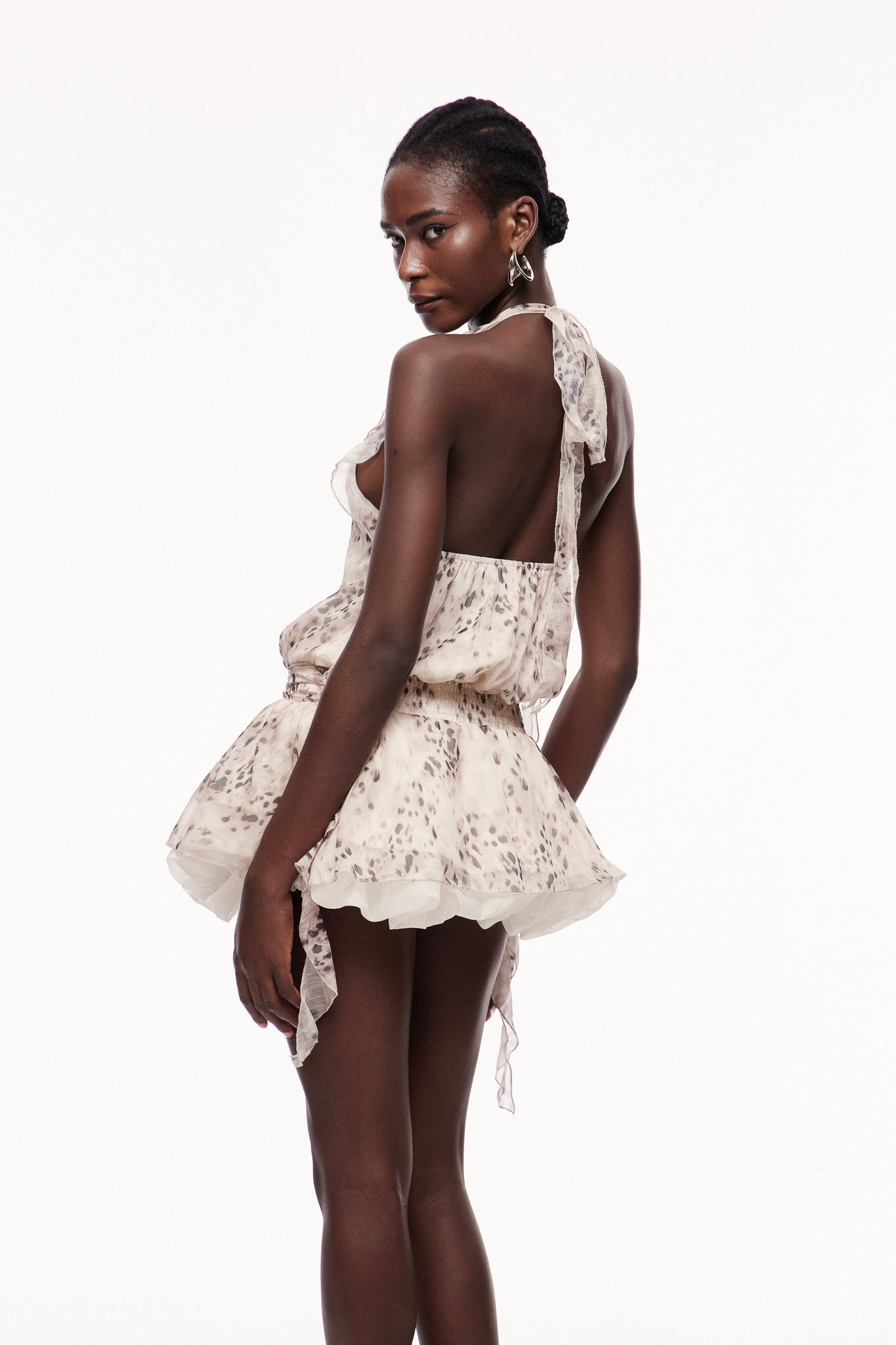 This Beyza Leopard halter neck ruched mini dress is a must-have for any fashion-forward individual. Made with a high-quality fabric blend, this dress not only showcases a trendy leopard print but also offers a flattering halter neck and ruched detailing. Perfect for any occasion, this mini dress is sure to make a statement.