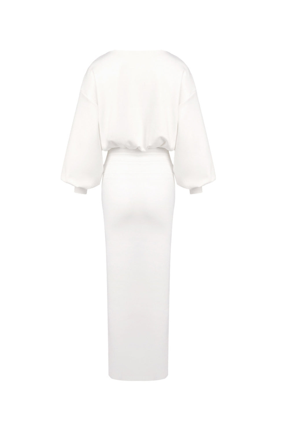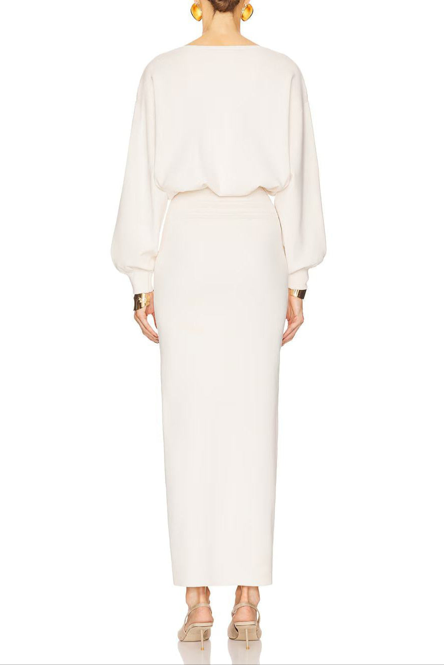 The Edith high elastic long hip maxi dress in white combines comfort and elegance effortlessly. Its stretchy fabric ensures a flattering fit that adapts to your body, while the maxi length offers graceful coverage. Perfect for both casual outings and more formal occasions, this dress accentuates the hips with a tailored silhouette, providing a refined and sophisticated look that moves with you throughout the day.