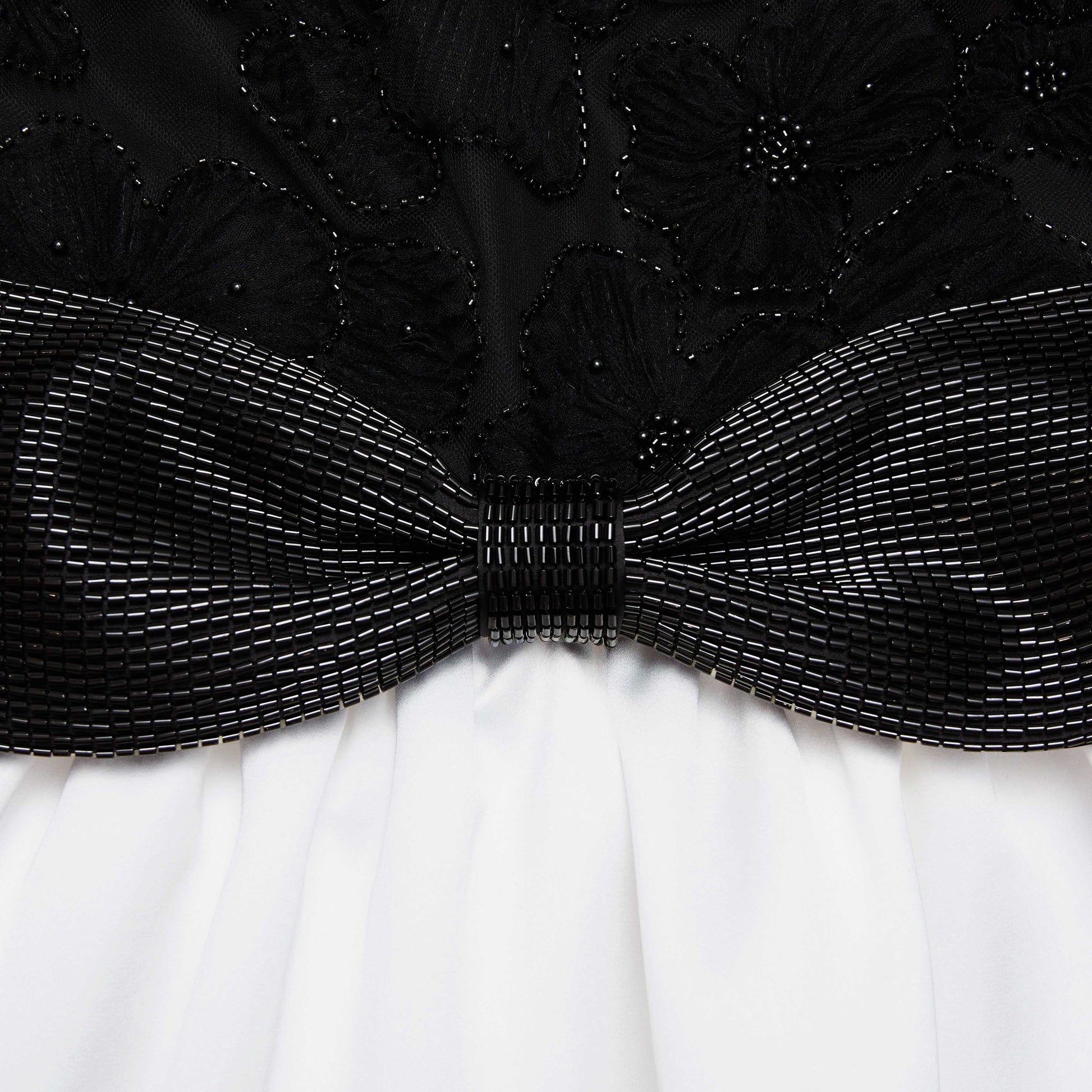 Full of vintage charm, black and white meet to striking effect in this mini dress, which stars a full tulle skirt. A flattering boat neck, central bow motif and pearl trims add polished details.