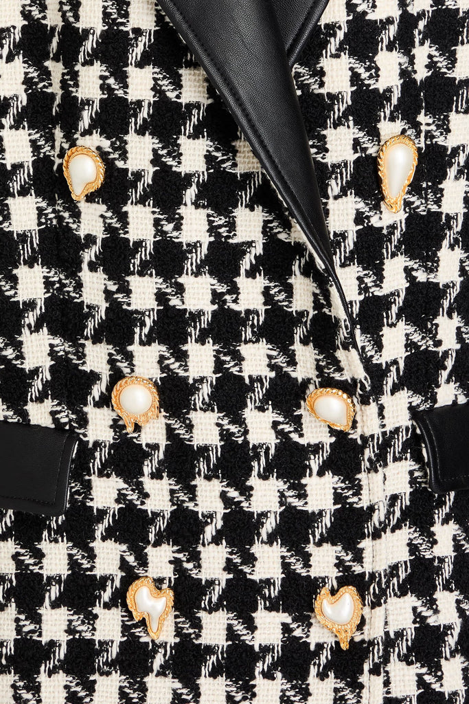 Elevate your wardrobe with this sophisticated double-breasted blazer, crafted from a premium wool-blend tweed in classic houndstooth. The structured silhouette and timeless pattern make it an essential layering piece for both professional and elevated casual settings. Finished with quality tailoring, this blazer pairs effortlessly with tailored trousers, dresses, or denim for versatile styling that transcends seasons.
