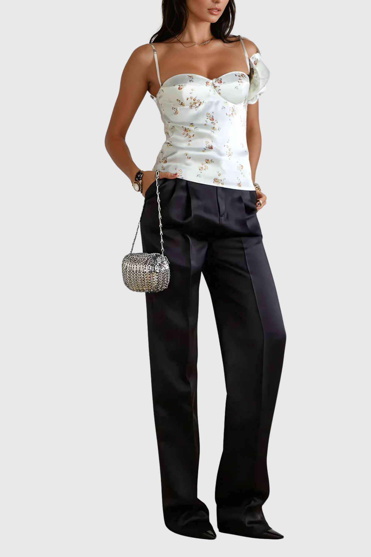 The Dagfinn Spaghetti Flower Top blends delicate design with expert craftsmanship. Featuring slender spaghetti straps and a subtle floral pattern, this top offers a lightweight, breathable fit perfect for warm days or layered styling. Its tailored cut ensures a flattering silhouette, making it a versatile piece that complements both casual and dressier ensembles with ease.