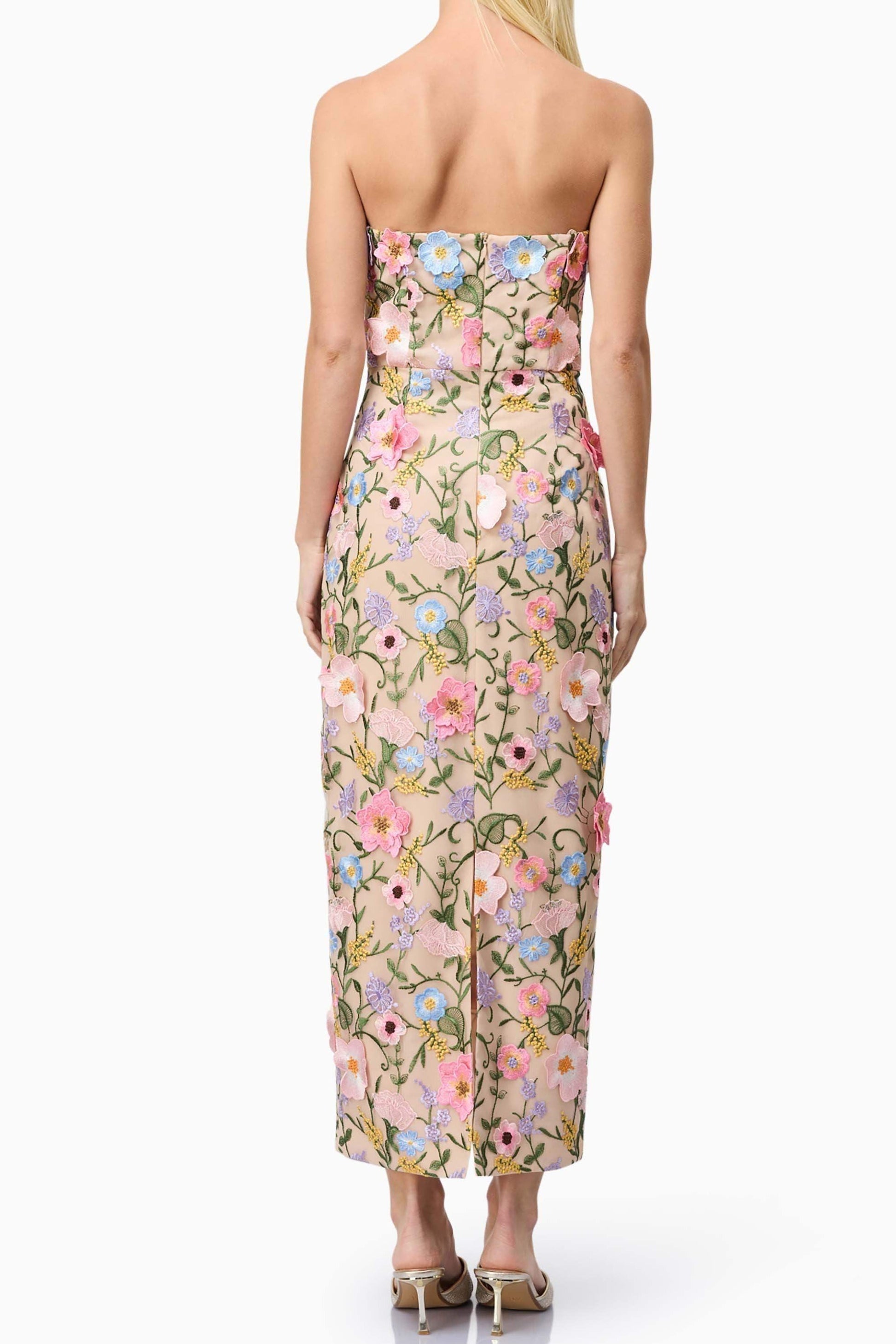 Elevate your wardrobe with the Helena Strapless Midi Dress in Floral Apricot. This expertly crafted dress features a flattering strapless neckline and a midi length that balances elegance with modern style. The delicate floral apricot pattern adds a soft, feminine touch, perfect for both daytime events and evening occasions. Designed for comfort and sophistication, this dress offers a seamless fit that enhances your silhouette while allowing ease of movement. Ideal for those seeking a refined yet effortless look.