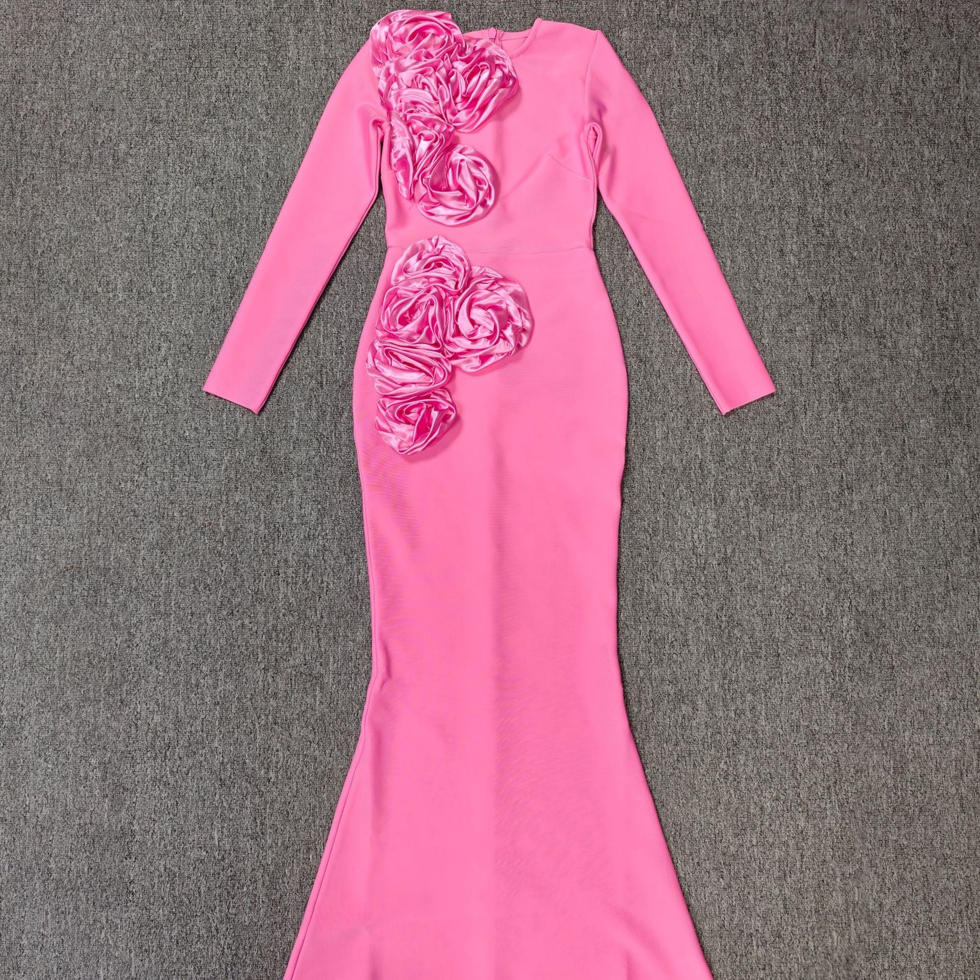 Elevate your evening wardrobe with this striking Sally 3D Flower Decorative Bandage maxi dress in blush pink. Crafted with precision-engineered bandage fabric, this silhouette hugs your curves while the dimensional floral embellishments add sophisticated texture and visual interest. The maxi length provides elegant coverage, making it an ideal choice for formal events, galas, or upscale occasions. The expert construction ensures a refined fit that flatters while the intricate 3D flower detailing serves as a statement piece requiring minimal additional accessories. Perfect for those seeking a bold yet polished look.